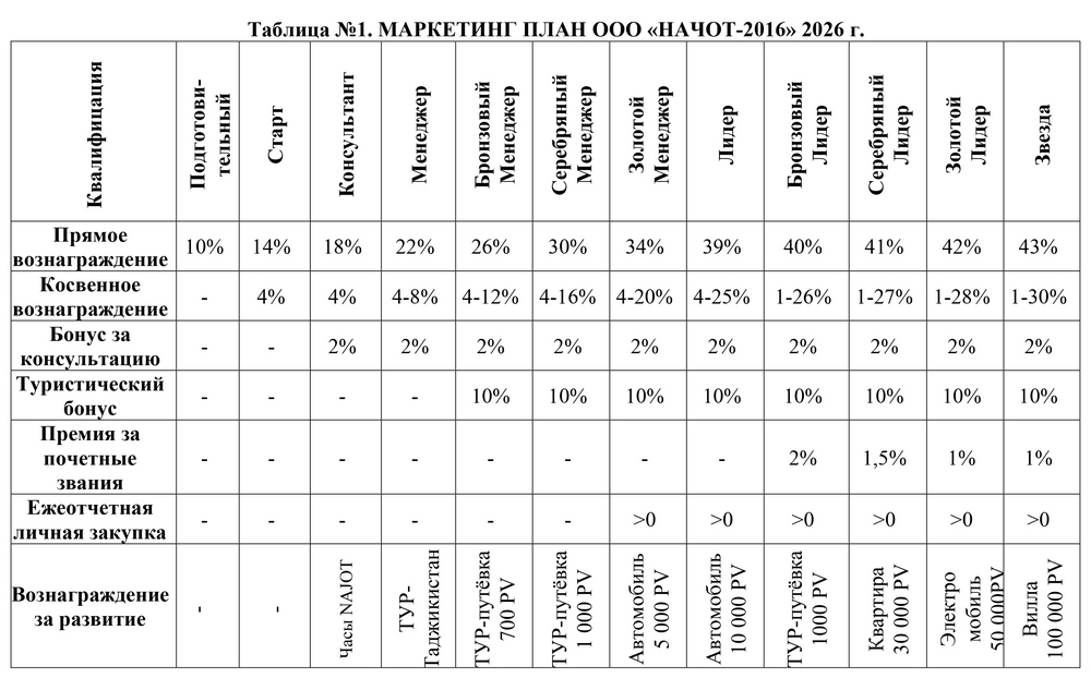 Право на трактовку Маркетинг Плана принадлежит ООО «Начот-2016».